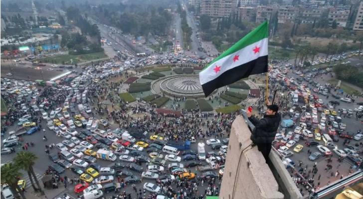 علم سوريا الجديد في العاصمة دمشق